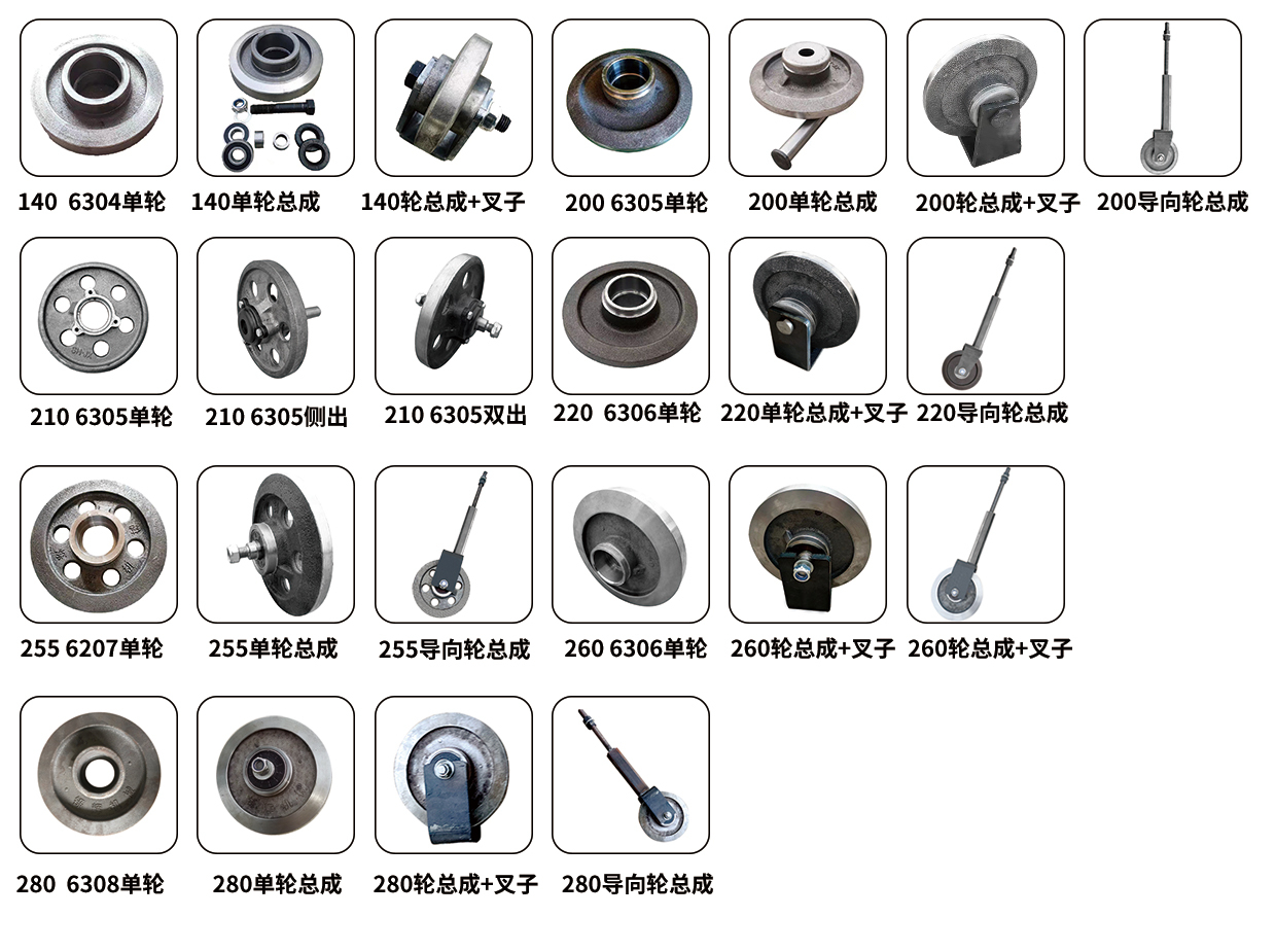 導(dǎo)向輪由鑄鋼制造,型號多種多樣,有直徑140 200 210 220 240 260 280等多種選擇可以適應(yīng)各種寬窄齒履帶需求,尺寸造型精密,結(jié)實耐用,防水耐磨,可以很好的做到引導(dǎo)履帶正確繞轉(zhuǎn)的作用。